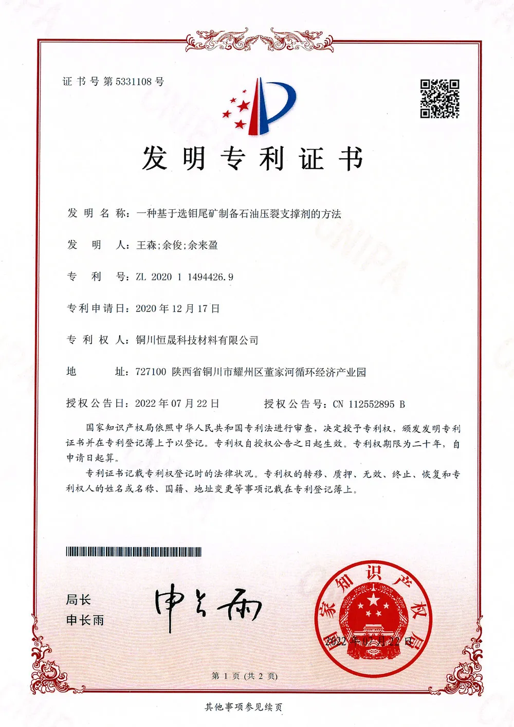 Опираясь на уникальный патент компании — «Способ получения керамзита из хвостов обогащения молибденовой руды в качестве сырья», производимый проппант занимает лидирующие позиции в отрасли по показателям коррозионной стойкости, термостойкости и стойкости к высокому давлению. Данная продукция не только точно соответствует строгим требованиям высокотехнологичного рынка к качественным материалам для гидроразрыва пласта, но также помогает клиентам снизить производственные затраты примерно на 20%, одновременно способствуя увеличению добычи на нефтяных месторождениях на 30%. Это незаменимый ключевой материал-проппант в процессе добычи нефти и газа из глубоких скважин и разработки сланцевого газа.